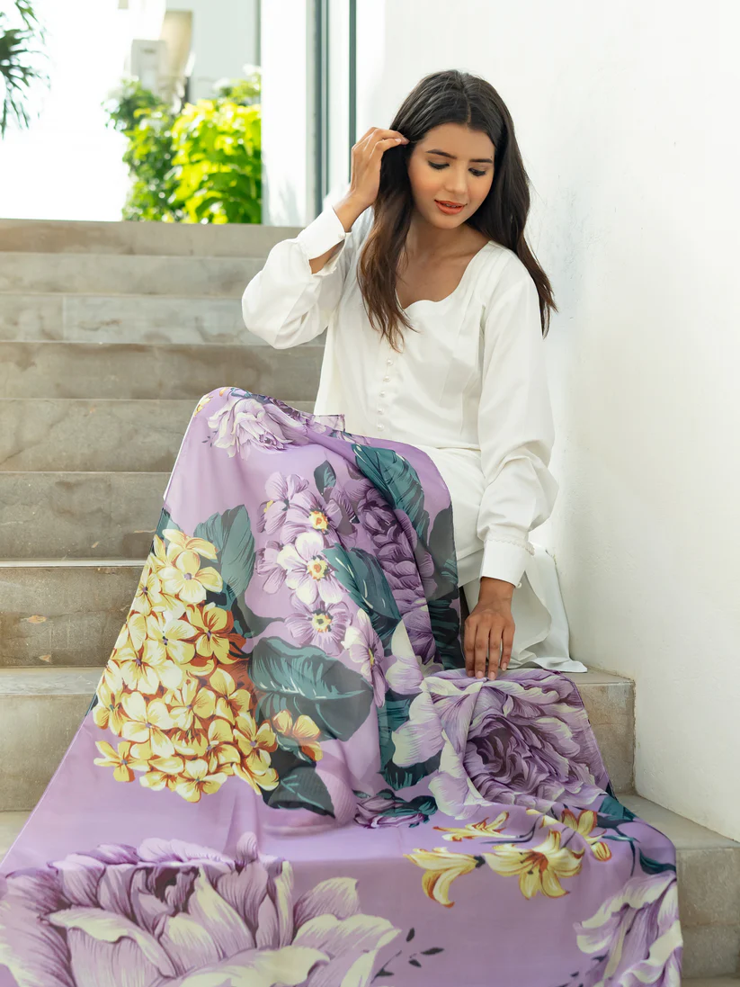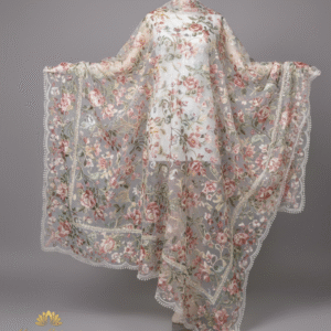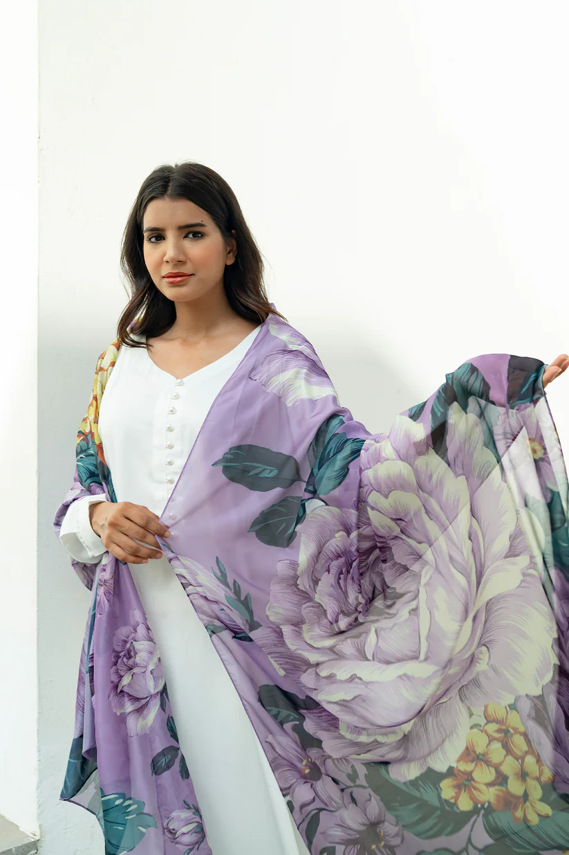 Celebrate the beauty of tradition with this elegant silk dupatta, adorned with intricate phulkari-inspired prints. The lustrous, soft fabric drapes effortlessly, while the vibrant design adds a festive flair. A perfect accessory for weddings, celebrations, and special gatherings.