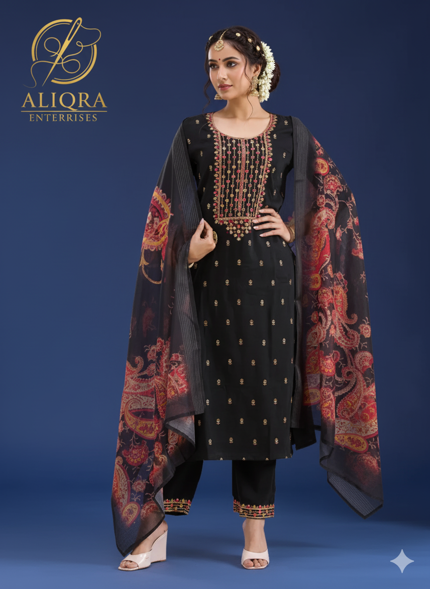 Make every day a celebration with Koskii’s Readymade Black Crepe Salwar Suit, a masterpiece that’s as spirited as you are! Crafted from luxuriously soft crepe, this outfit dazzles with exquisite threadwork embroidery, ensuring you twirl through your day with unmatched elegance and confidence. Step out in style, feel fabulous, and let every moment shine with Koskii’s signature touch of vibrant flair and timeless sophistication.