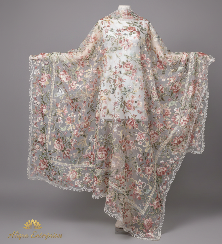Discover Delicate Grace with Aliqra Enterprises’ Floral Organza Dupatta
