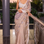 Ocean Blue Organza Hand Embroidered Pre-Draped Saree Set