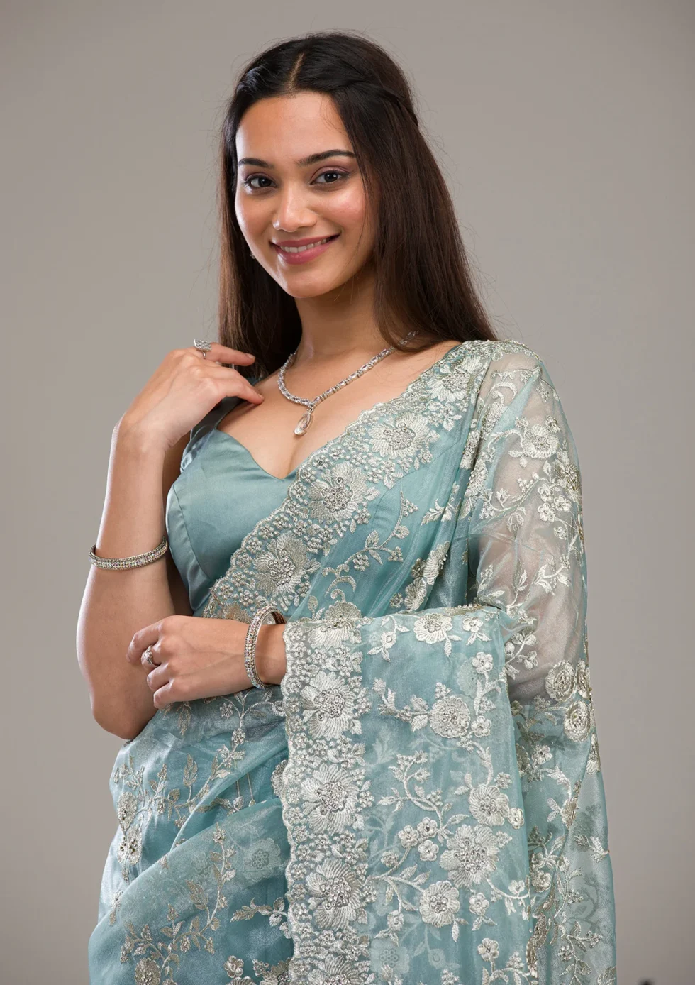 Unwrap the magic of tradition with Koskii’s breathtaking tissue saree, adorned in shimmering silver Zariwork that captures every gleam of light! This dazzling drape is crafted from the softest tissue fabric, ensuring not only a glorious sheen but also a luxurious feel. Whether it’s making a statement at elegant soirées or owning the spotlight at festive gatherings, this saree guarantees a sensation of radiant charisma and unparalleled grace.